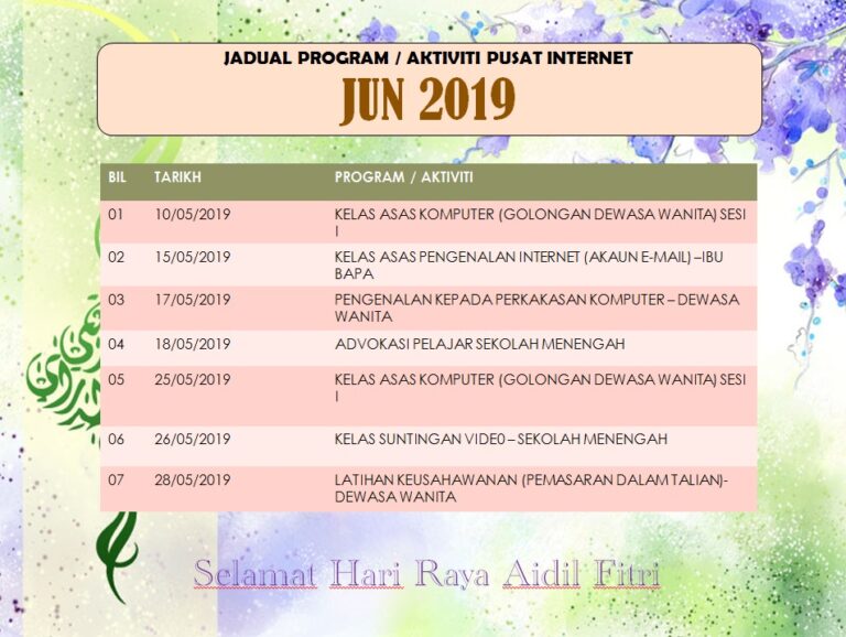 Tarikh : 10 Mei 2019 Masa : 9.00AM – 12.00PM 2.00PM – 5.00PM Lokasi : PI1M Pekan Baru Pitas Peserta : 10 […]