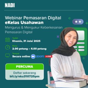 Sertai Webinar NADI Nurture eKelas Usahawan – Strategi Mengurus & Mengukur Keberhasilan Pemasaran untuk pelajari kaedah yang terbukti berkesan.
